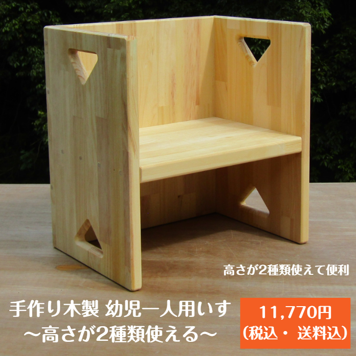 手作り木製 幼児一人用いす「高さが2種類使える!」【完成品】くるりと回して高さ2段階(18.5cm/21cm)無塗装