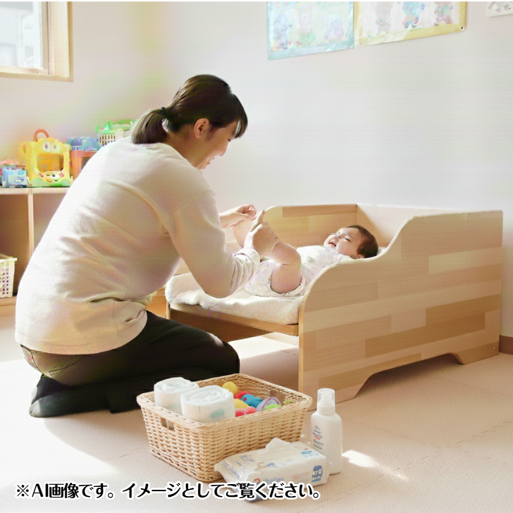 すべて天然木のメルクシパイン集成材で作っております。ナチュラルな天然木に癒され、交換をする大人も、赤ちゃんも気持ちよくおむつ交換ができます。