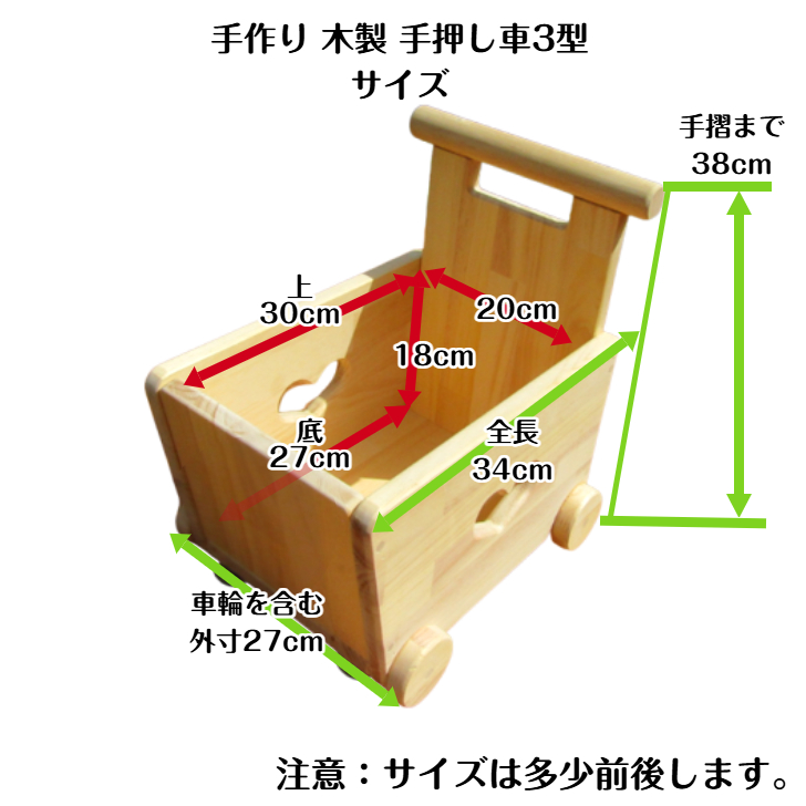 手作り木製 おもちゃも運べる手押し車-3型・両面透かし・送料込み・