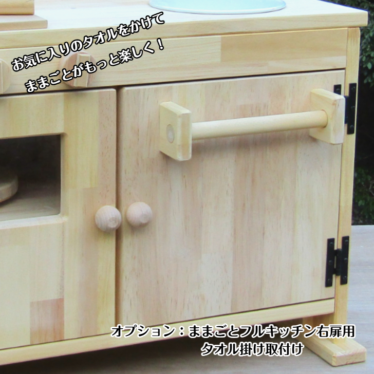 ご要望が多かったので、大きなフルキッチンの右扉側に、タオル掛けを取り付けるオプションを作りました!