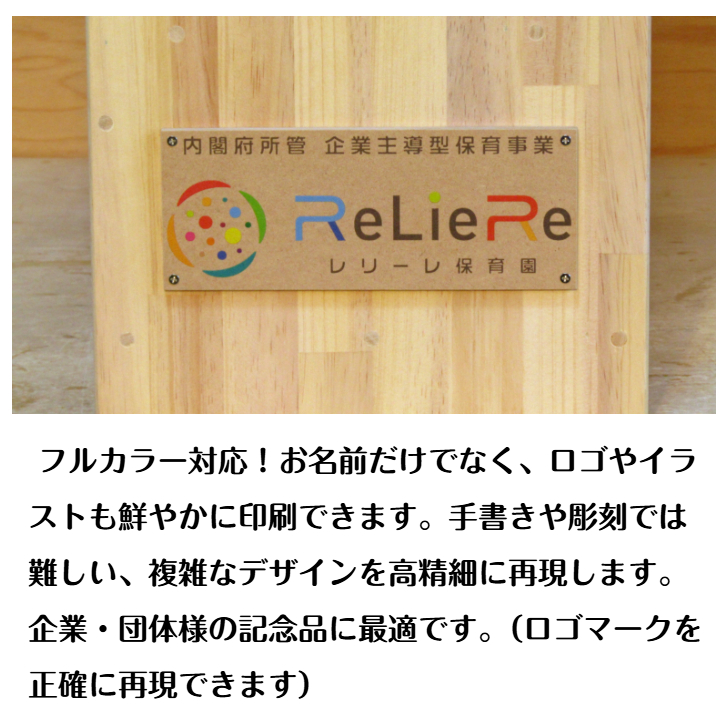 フルカラー対応!お名前だけでなく、ロゴやイラストも鮮やかに印刷できます。手書きや彫刻では
